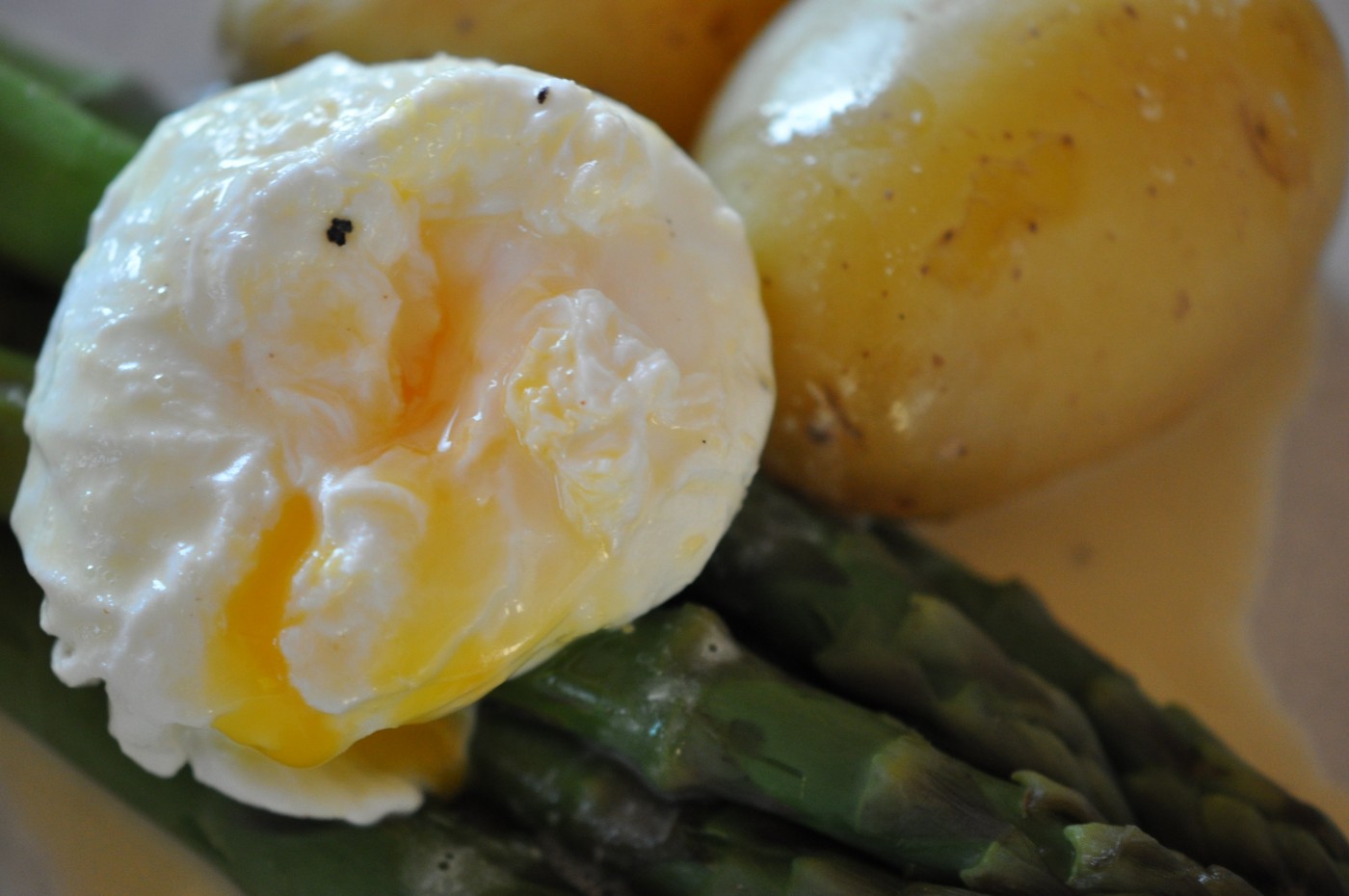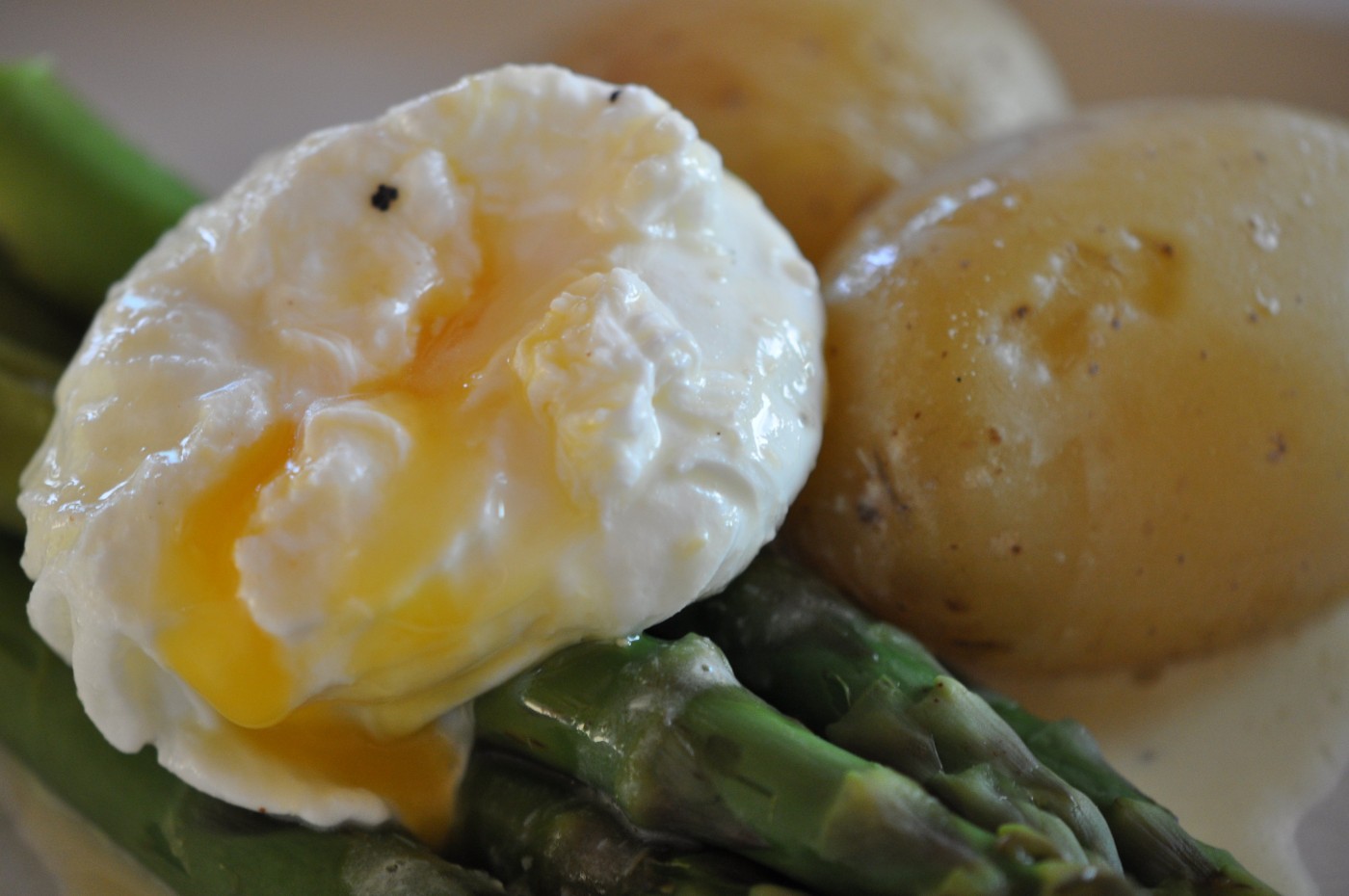 - Na talíř servírujeme chřest, který pokrademe máslem, na chřest dáme pošírované vejce, které roztrhneme vidličkou a osolíme, opepříme. Jako přílohu podáváme brambory s troškou másla.
