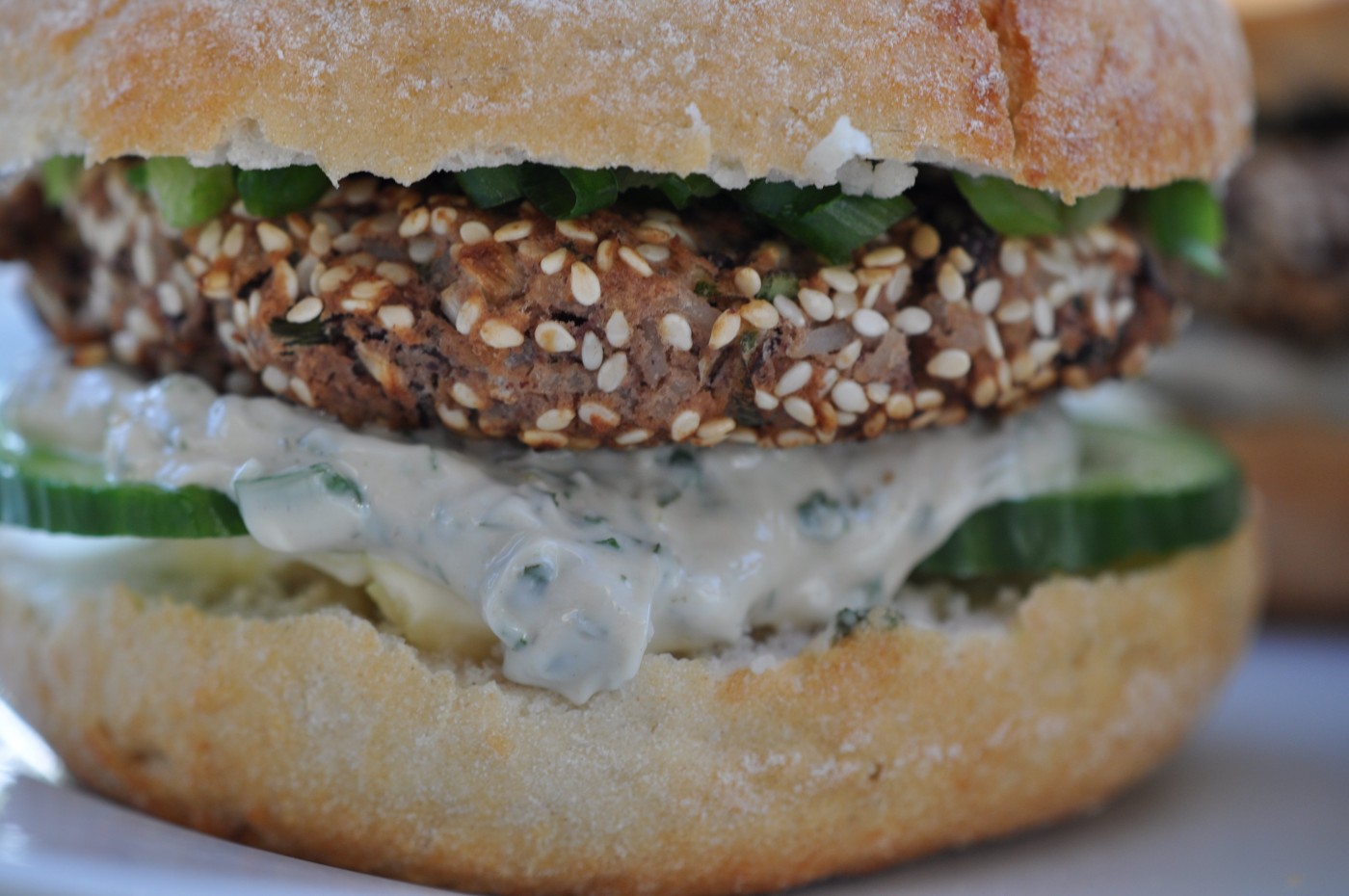 - Mezitím si připravíme housky, které pomažeme ochucenou majonézou. Zeleninu vrstvíme dle fantazie. Přidáme fazolové Burgery a podáváme.