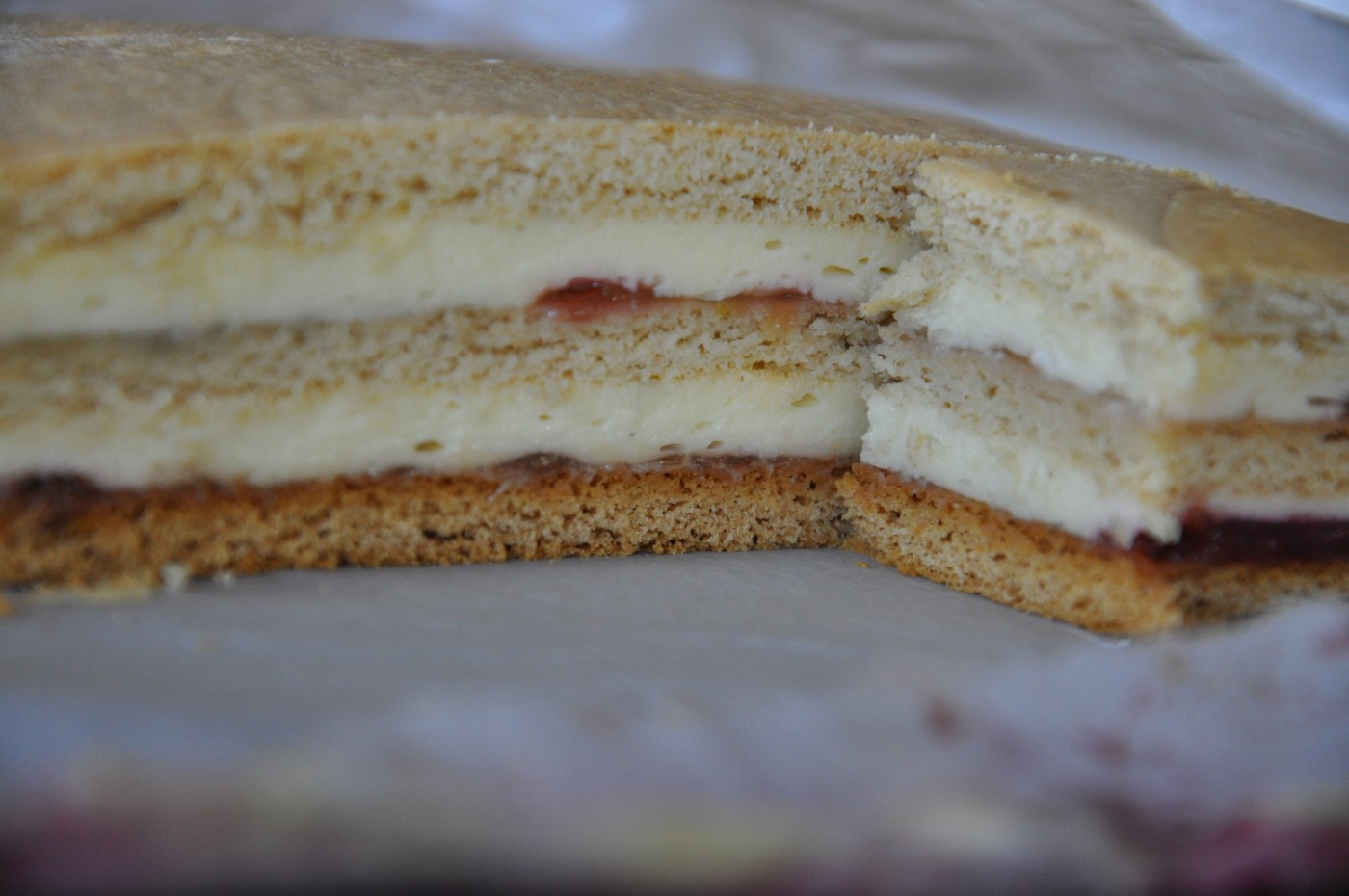 Puding si uvaříme dle návodu a necháme vychladnout. Změklé máslo vyšleháme s cukrem a zašleháme do něj vychladlý puding. Můžeme přidat kapku rumu. Vychladlé pláty rozpůlíme, budeme mít tedy 4 pláty. Pláty potřeme marmeládou, poté krémem a postup opakujeme. Hotový dezert necháme na chladném místě, nejlépe přes noc rozležet.